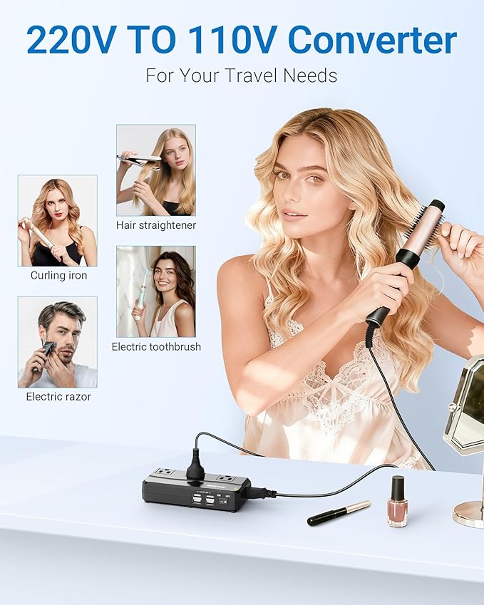 - Use independent research and development of patented technology, bestek converters could converts the voltage from 100 to 240 volts to 110 volts for American appliances, with Up to 92% conversion rate, 50% higher than others. This is a must-have US-European voltage converter, perfect for powering your curling irons, hair straighteners, electric toothbrushes, fans, and more. 🌐Please Note🌐: Avoid using curling irons and straighteners that only support a single voltage input (110V/120V).