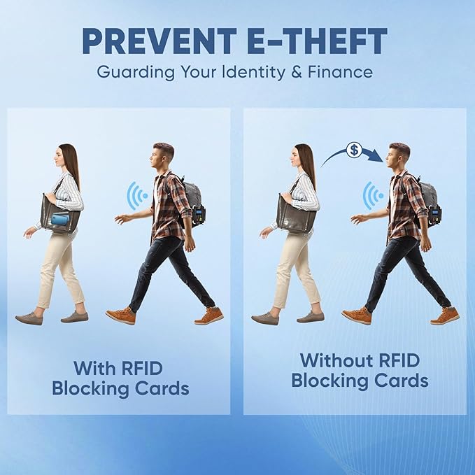 - 【ESSENTIAL FOR THE MODERN DAY】Protect yourself from data thieves who skim & steal your personal financial information within seconds. Avoid wasting hours of cancelling credit cards and anxiety over identity theft. Travel safely & securely with confidence knowing you are protected with our RFID blocking card & will not be a victim