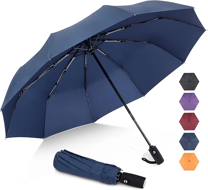 - 10 RIBS,BETTER WINDPROOF: Our travel umbrella features 10 resin-reinforced fiberglass struts that can withstand the strongest gusts of wind to protect our compact umbrella in extreme conditions.The protective hood of our small umbrellas has double ventilation,which lets the wind through and keeps it dry
