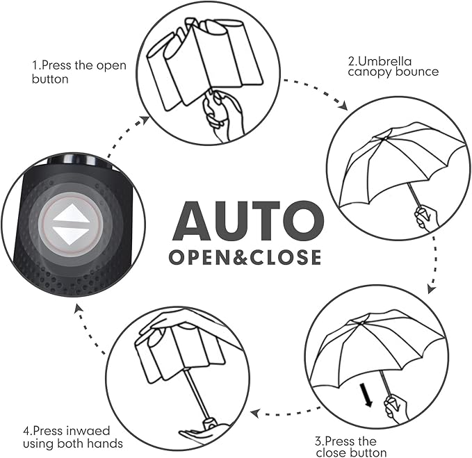 - AUTOMATIC OPEN-CLOSE SMALL UMBRELLAS FOR RAIN: This travel umbrella windproof features innovative one-button automatic opening and closing,With a size of 12.8 inch when closed,our lightweight travel umbrella compact 1 LB fits easily put in your car,briefcases,backpack,travel bags,etc