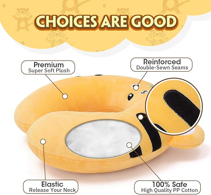 H HOMEWINS Travel Pillow for Kids,Cute Animal Toddler Neck Pillow for Boys Girls,Soft Neck Head Chin Support Pillow,Travel Accessories for Airplane, Car, Train,Recline (Tiger)