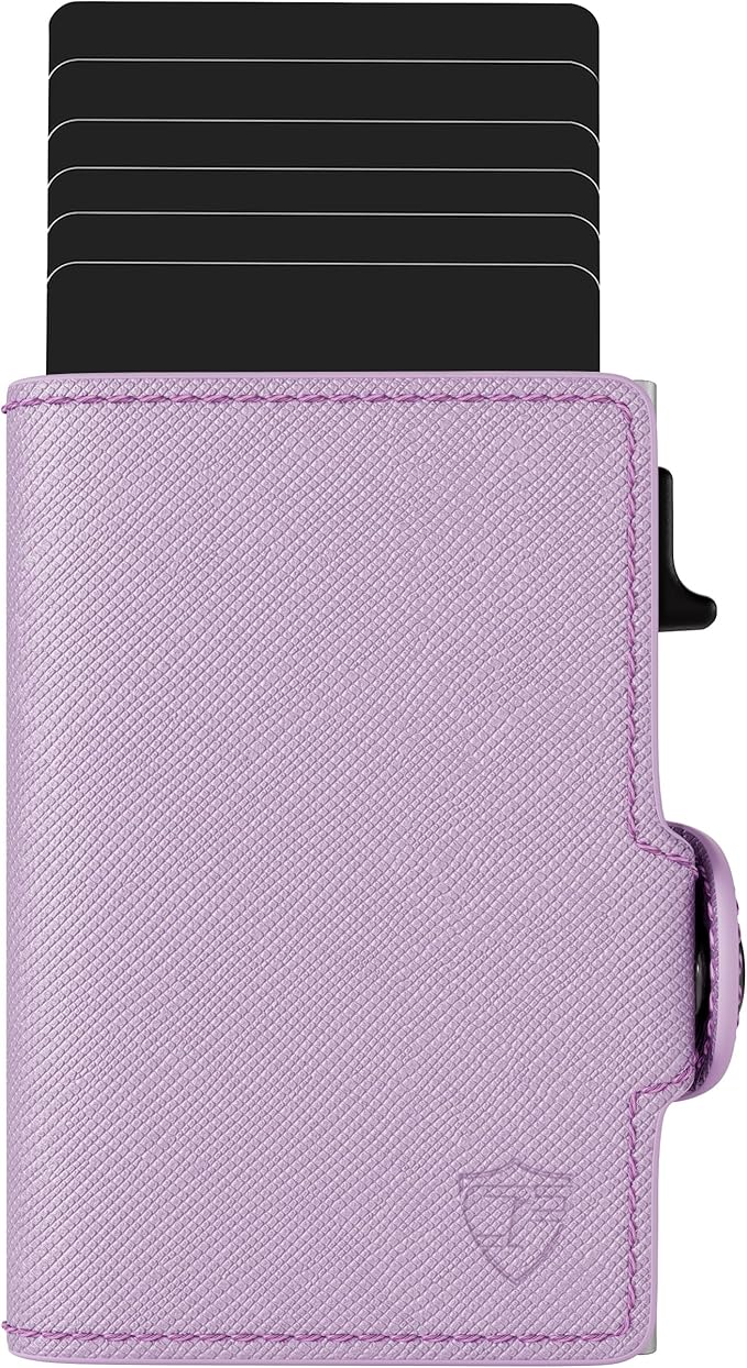 - SMART DESIGN: Compact wallet for women with innovative pop-up mechanism; Press the button for instant access to all your cards; Minimalist card case with sleek profile fits perfectly in small purses or pockets