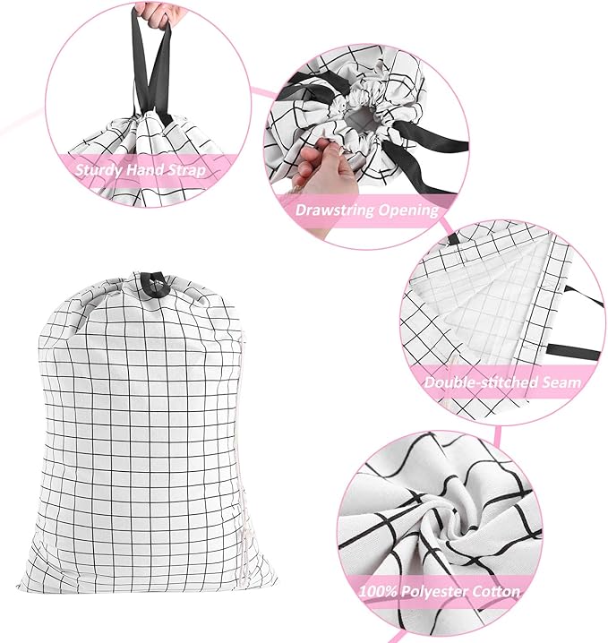 - Premium Material: Made of polyester cotton, it's soft, smooth, breathable and comfortable. And has good light resistance and good stability. Sturdy for hauling big laundry loads, limits the possibility of rips and tears. Machine washable.