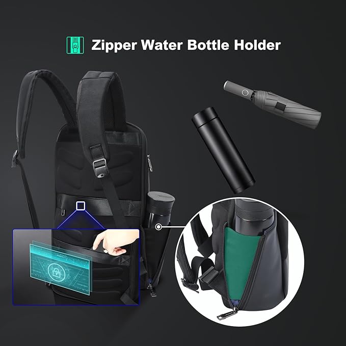 BOPai Slim Laptop Thin Business Backpack with Bottle Holder USB Charging Professional for Men Notebook Work Office Anti Theft Smart Computer 15-15.6 inch Back pack Light Black