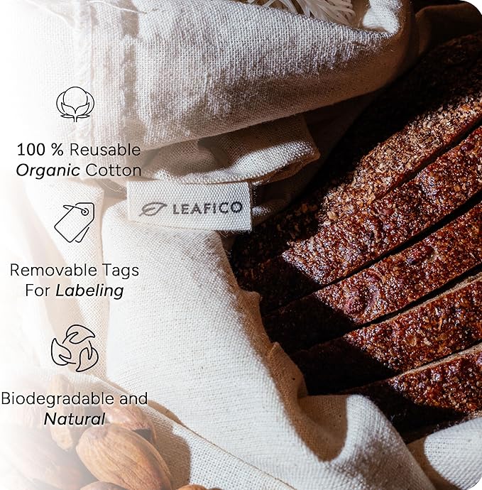 - Save the ocean - We love the oceans, help remove plastic waste from water and land. Use Leafico organic, biodegradable cotton/muslin storage bag. Natural cotton fabric bags are smooth and soft. Great muslin fabric bags.