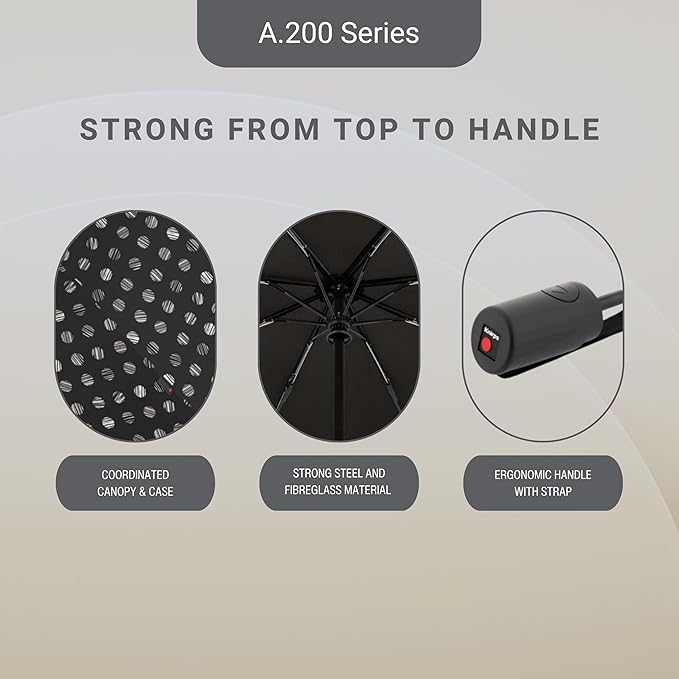 - Withstands Wind Speeds Up to 75 MPH: Engineered for severe weather, the A.200 has been wind tunnel tested to endure powerful gusts up to 75 mph, using 8 reinforced ribs and a flexible steel-aluminum frame for optimal wind load management.