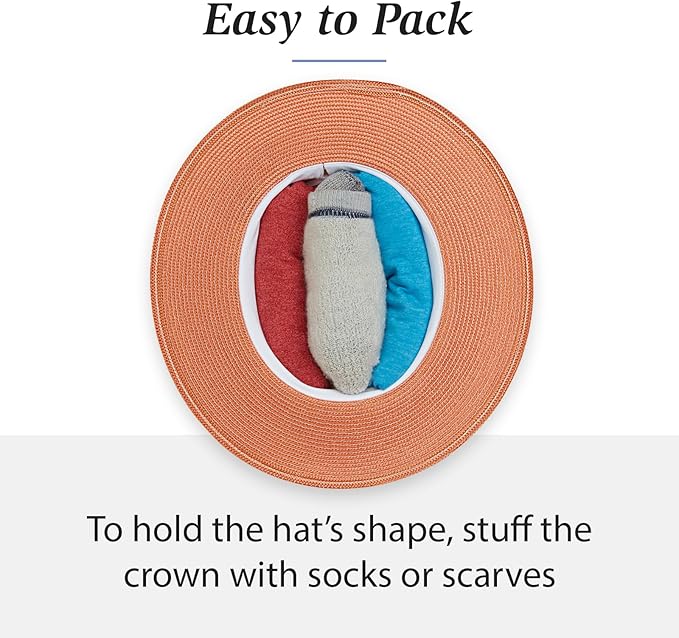 - PACKABLE AND TRAVEL-READY: Designed for convenience, this packable sun hat uses a stuff it packing technique. Lay the Kristy Fedora upside down in your suitcase, pack clothes around it, and use small items like socks to stuff inside, keeping its shape intact. Ideal for travel, beach trips, hiking, city excursions, vacations, and weekend getaways.