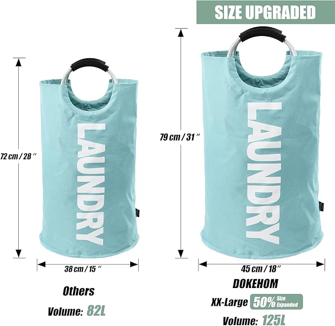 DOKEHOM 125L X-Large Collapsible Washing Laundry Basket Bag (7 Colors) for Bedroom, Fabric (Light Blue, XL)