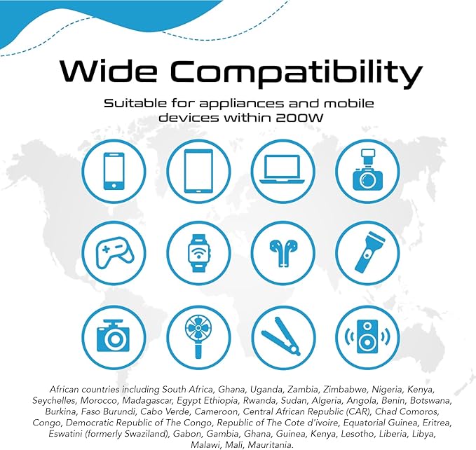 Ceptics South Africa Voltage Converter - 200W Convert 220V to 110V for Devices Like Curling Iron, Straightener, Chargers, Step Down World Power Plug 4 USB PD 18W Fast Charging Type M, G, E/F