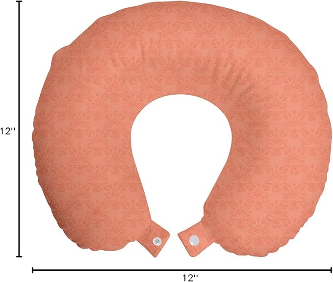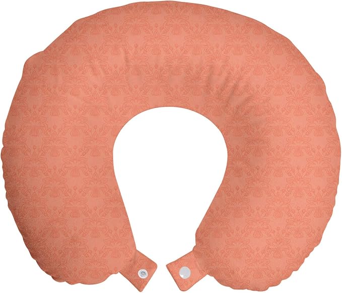 Ambesonne Peach Travel Pillow Neck Rest, Flower Ornate Pattern Nature Inspired Image with Soft Color Spring Summer Foliage Print, Memory Foam Traveling Accessory for Airplane and Car, 12", Peach