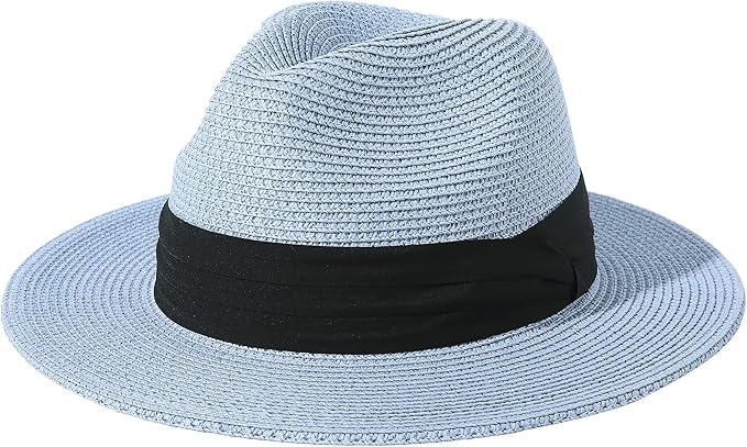 Lanzom Women Wide Brim Straw Panama Roll up Hat Fedora Beach Sun Hat UPF50+