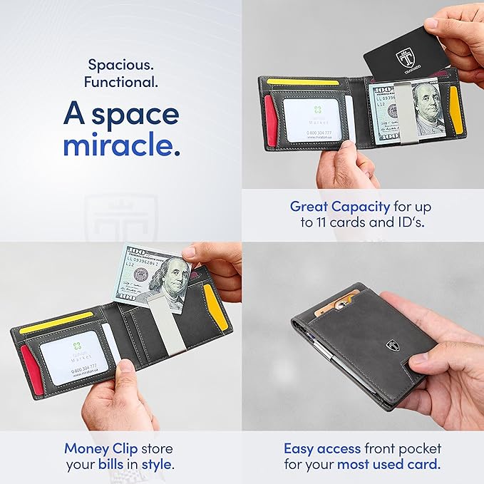 - ππ‘π§πππ₯ππ§ππ π π’π‘ππ¬ ππππ£ - The metal money clip allows you to clip several bills inside your wallet