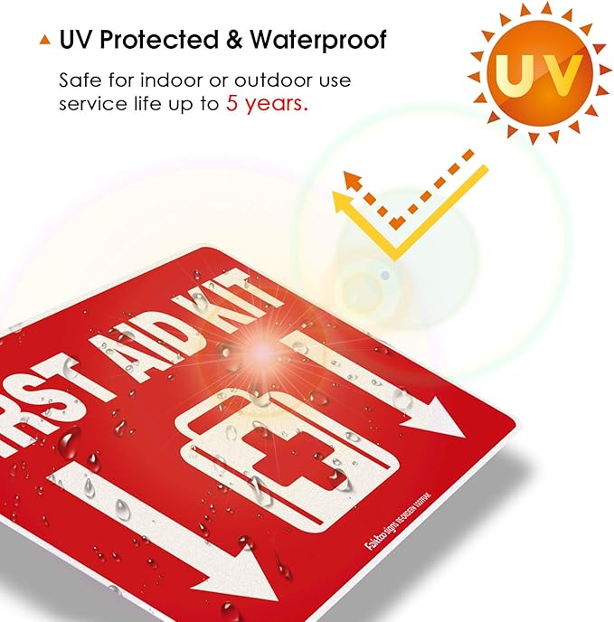 - Easy to Read:The sign is designed with high-res red and white color, which is simple and clear, and helps to tell people where to find the kit, plus immediately seeing it will make a big difference in the prompt care that the injured person gets.
