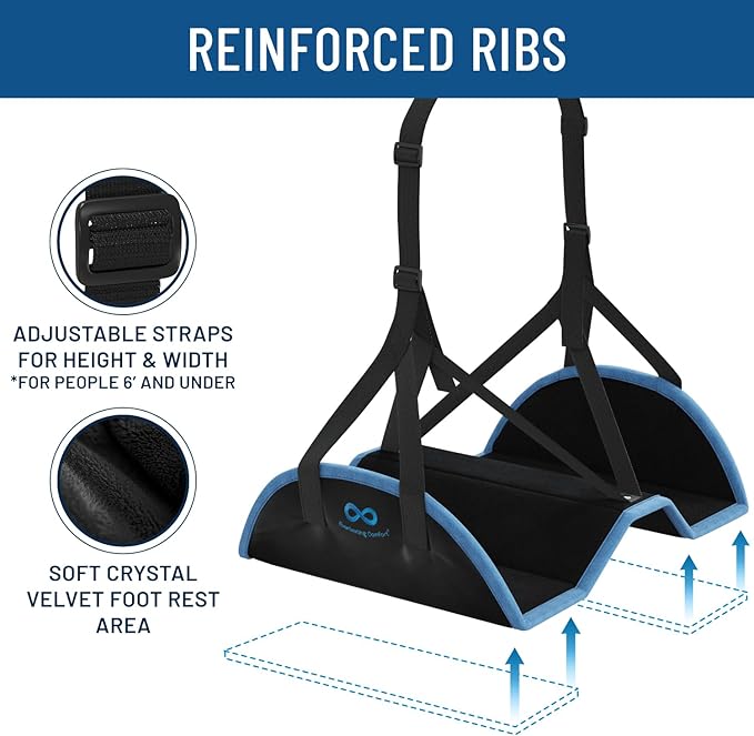 Everlasting Comfort Airplane Foot Hammock - Memory Foam Foot Rest for Plane Travel - Portable Foot Rest for Air Travel, Desk & Car - Airplane Essentials Foot Hammock for Plane Travel