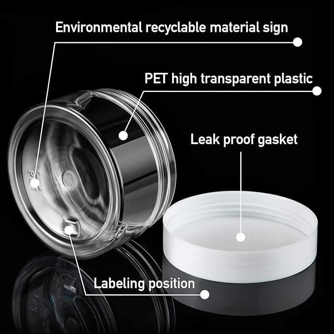 - Quality Material: the plastic jars with lids are made of quality plastic, without odd smell, does not contaminate your skincare products, stable, high temperature resistance, sealed storage and leak proof