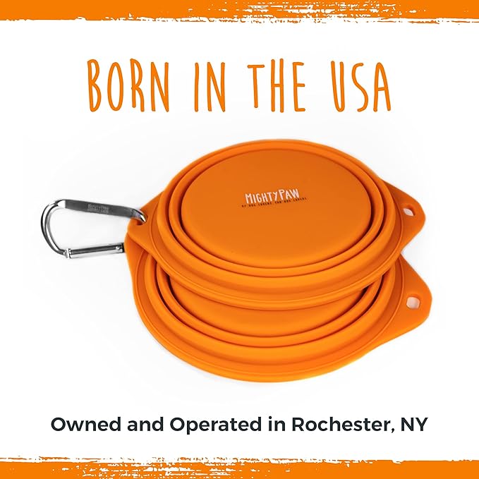Mighty Paw Collapsible Travel Dog Bowl Set - Silicone Food and Water Bowls - Bonus Carabiner Clip - Ideal Hiking - Camping - Walking - Lightweight - Leak-Proof Dog Set - Orange - 2 Pack (27 oz)