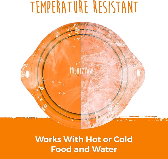 - 2- Pack, 100% Food Safe Silicone: The Mighty Paw collapsible food and water bowl set for dogs is completely safe for your pup to eat and drink from. Made with BPA-free and eco-friendly silicone that is free from harmful toxins.