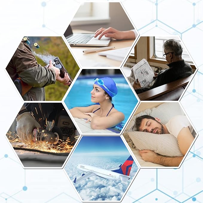 - Universal usability: These silicone earplugs can be widely used in different scenarios. Indoor using - sleeping, studying, concerts; Outdoor using - swiming or any watersports; Working - factories, commercial areas, construction sites; Traveling - flying, racing, motorcycle riding.