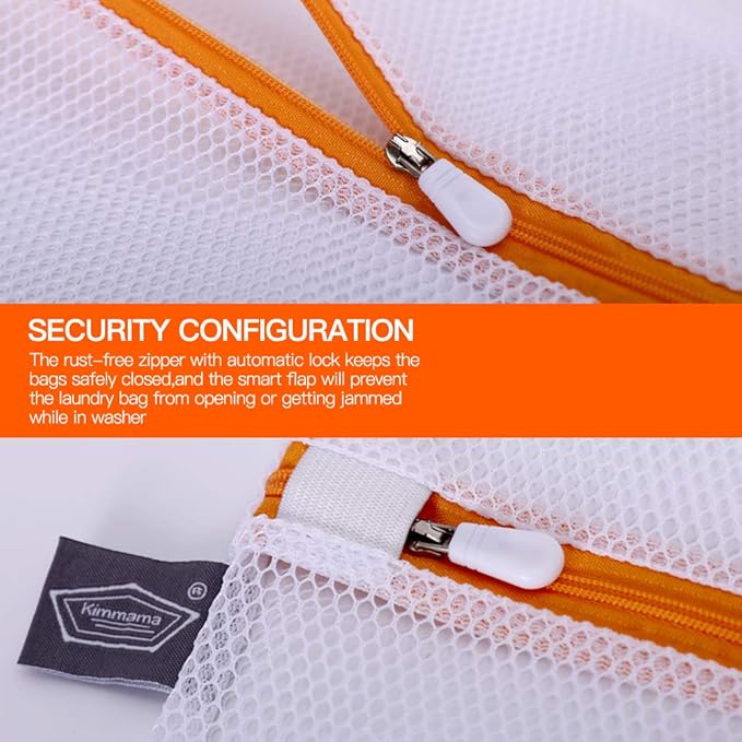 Kimmama Laundry Mesh Wash Bags, Lingerie Bags for Washing Delicates, White Net, Orange Zipper, 1L & 1M