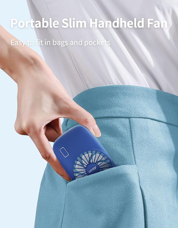 Aluan Handheld Fan Mini Fan Powerful Small Personal Portable Fan Speed Adjustable USB Rechargeable Cooling for Kids Girls Boys Woman Man Home Office Outdoor Travel, Navy Blue