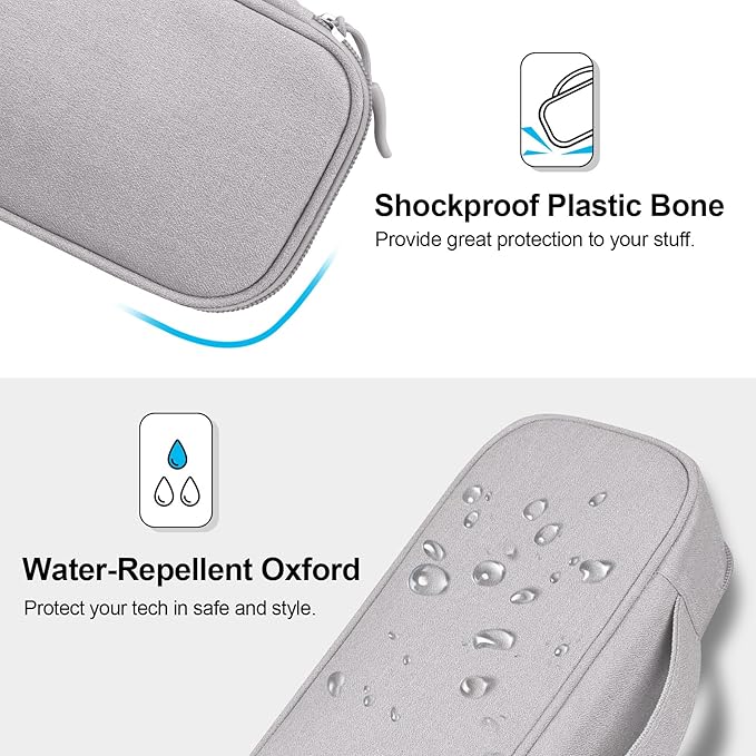 - PROTECTIVE & QUALITY MATERIAL: Constructed with Water-Repellent and Anti-Scratch Oxford Fabric; Shockproof Plastic Bone outside & Soft Sponge Lining inside offer the electronic case great buffer; the electronics storage bag won’t be damaged easily, better protect your electronic gadgets. Durable & smooth zippers deliver quick access to the essentials inside the travel accessories case.