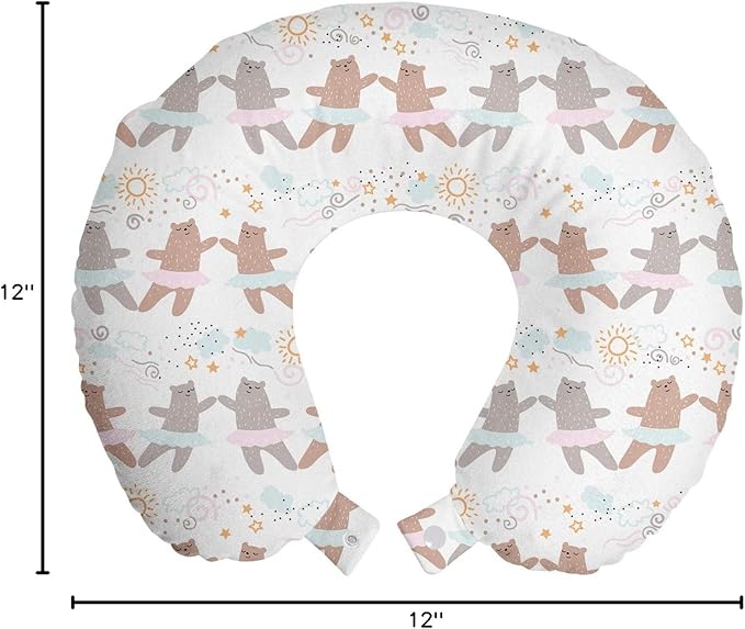 Ambesonne Cartoon Travel Pillow Neck Rest, Funny Ballerina Dancer Bears in Tutu Costume Dancing Stars Happiness Style, Memory Foam Traveling Accessory for Airplane and Car, 12", Dust Rose