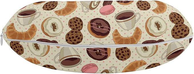 Ambesonne Dessert Travel Pillow Neck Rest, Patisserie Theme Pattern Chocolate Coated Donut Cookie Latte Croissant, Memory Foam Traveling Accessory for Airplane and Car, 12", Pink Brown