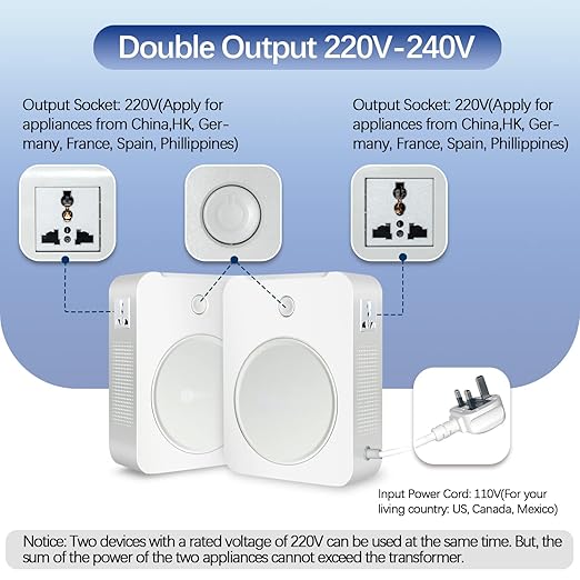 - 3000W Step Up Transformer 110v to 220v : This Step Up Transformer is suitable for using Europe Or Asian appliances in US; If you need to use 220V and 3000W EURO and Asia devices appliances such as Hair dryer, rice cooker, massage instrument, home beauty instrument, wall breaking machine, multi -functional dish machine in US, Canada, Mexico,Please choose this 3000W Step Up Transformer 110v to 220v