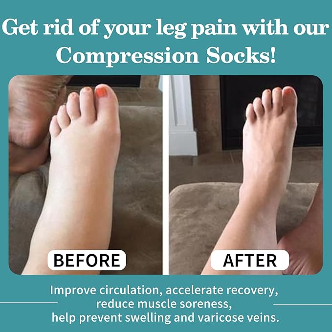 - OUR MISSION-Assist forward-thinking, active people find a way,GET RID OF YOUR LEG PAIN.Best support for runners, athletes, teacher,flight crew,receptionist, office worker,pregnant,young and old,in a variety of phases of life.Especially those looking for ways to help control swelling in the legs and feet....These socks are perfect for working out, recovery, or every day use! Allowing you to enjoy the circulation benefits and pain relief all day long, wherever you are, and whatever you're doing!