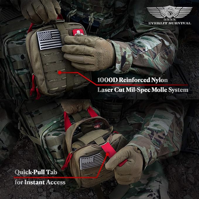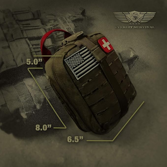 - ✅【Most Advanced First Aid Survival Kit & IFAK】 Upgraded from the best-selling EVERLIT Survival First Aid Kit, improved by the Army Vets, field-tested by the Ex-Army Sergeant. The most comprehensive, advanced, quality Medical Survival Kit on the market, comprises essential first aid supplies and high-grade survival tools packed in a Mil-Spec Molle System Compatible tactical pouch. Perfect for camping, hunting, hiking, boating, outdoors, field trip, home, office, and car.