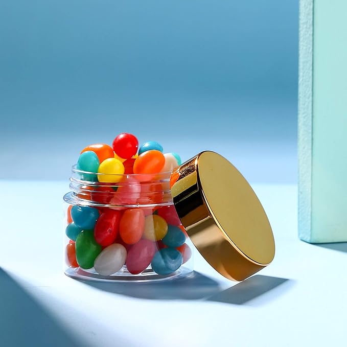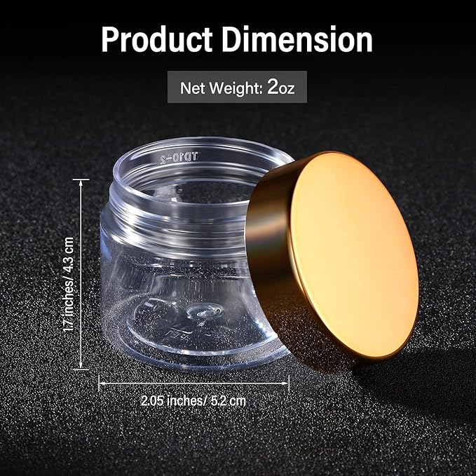 SATINIOR 12 Pack Plastic Container Jars with Lids Round Clear Travel Cosmetic Container Jars for Toiletries, Lotion, Cream, Ointments, Makeup, Rhinestone, Samples, Kitchen Storage(2 oz,Gold)