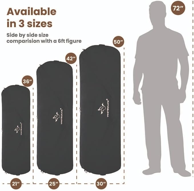 • SPACIOUS MAIN COMPARTMENT: Durable and functional duffle bag comes in 3 different sizes; Standard Size: 36" (Height) x 13" (Diameter) | 21" Flat Width, Large Size: 42" (Height) x 15" (Diameter) | 25" Flat Width, Extra Large Size: 50" (Height) x 18.5" (Diameter) | 30" Flat Width, depending upon your need. It’s large enough to store all your gear and gym accessories for long trips and traveling. This tight woven canvas won't rip or tear apart. Perfect for packing, moving and storing items.