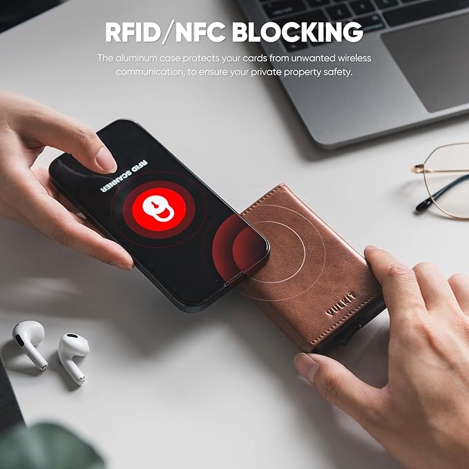 VULKIT Pop up Wallet Minimalist Cash Wallets RFID Blocking Leather Smart Credit Card Holder with Magnetic Closure for Men