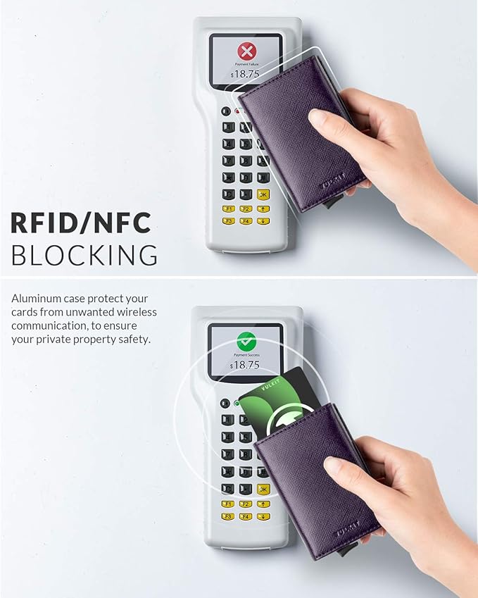 - RFID/NFC Blocking Card wallet- Integrated aluminum case protects your cards from unwanted wireless communication, keeps your private property safety.