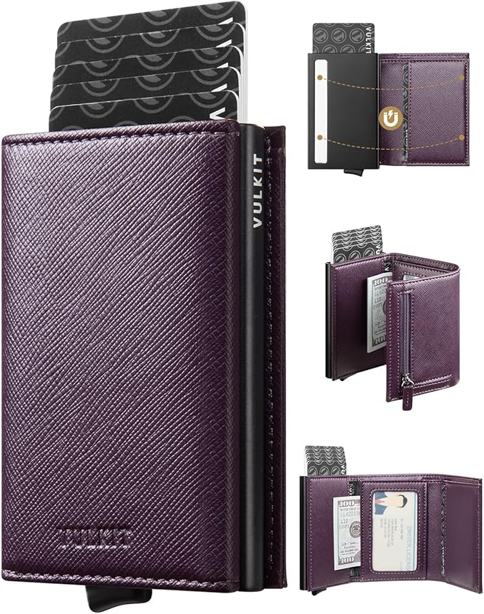 VULKIT Pop up Wallet Minimalist Cash Wallets RFID Blocking Leather Smart Credit Card Holder with Magnetic Closure for Men