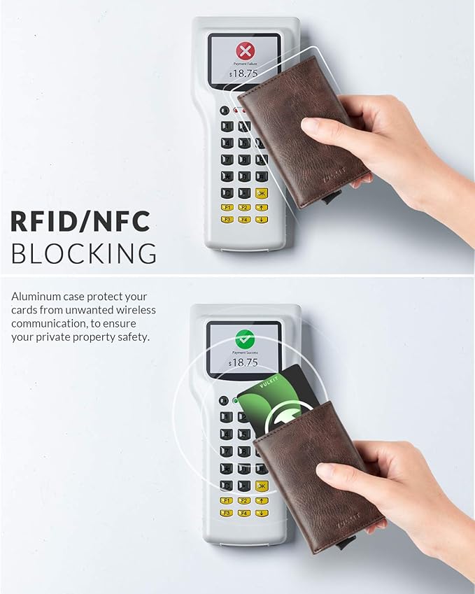 VULKIT Pop up Wallet Minimalist Cash Wallets RFID Blocking Leather Smart Credit Card Holder with Magnetic Closure for Men