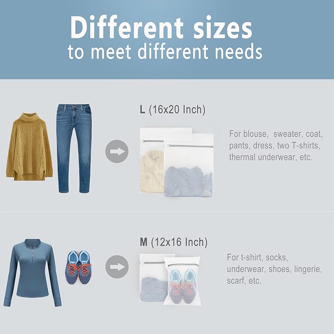 - Large, medium and extra strong: our 16" x 20" (40 x 50 cm), 12" x 16" (30 x 40 cm) laundry bag made of durable material (120g honey comb mesh) for a long-lasting usage