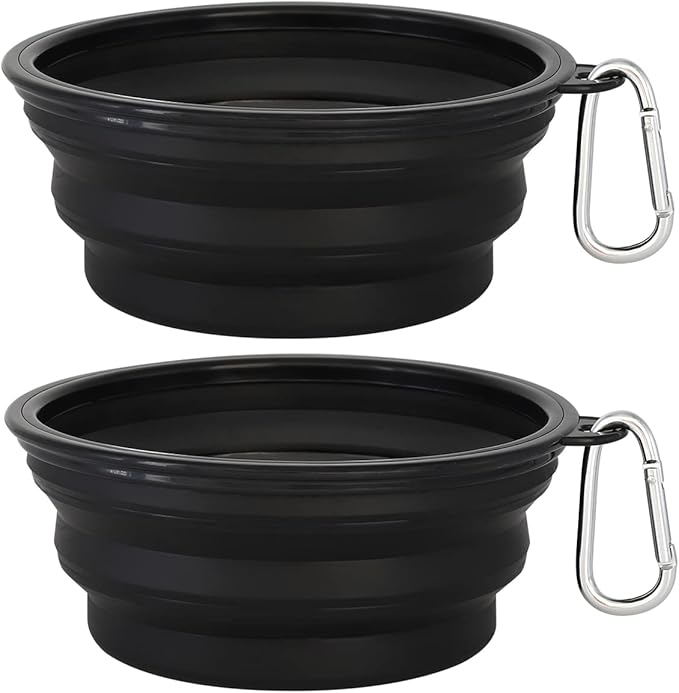 Kytely Large Collapsible Dog Bowls 2 Pack, 34oz Foldable Dog Travel Bowl, Portable Pet Water Food Bowl with Clasp, Pet Cat Feeding Cup Dish for Traveling, Walking, Hiking (Black+Balck)