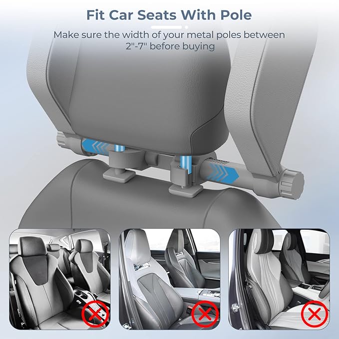 - Headrest for Most Car Seats: Our car headrest pillow fits only seats with poles; the pole distance must be between 2''-7''; please confirm there’s a metal rod on your car seat before purchasing; see our image to check if your seat is compatible