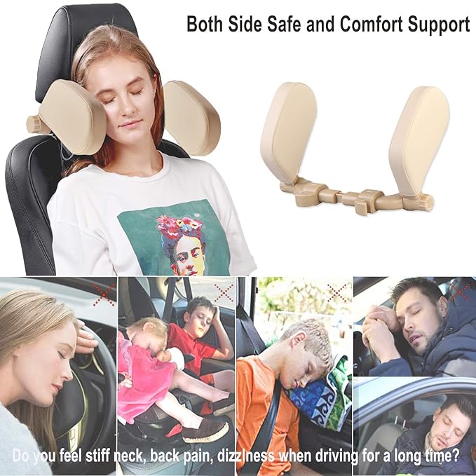JZCreater Car Seat Headrest Pillow, Head Neck Support Sleeping Travel Seat Pillow with Cushion Foam,Premium Seat Head Pillow,360 Degree Adjustable Long Trip Rest Headrest Pillow for Kids Adult, Beige