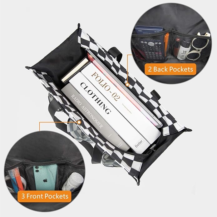 TOPDesign Utility Water Resistant Tote Bag with 13 Pockets, Top Zipper Closure & Thick Bottom Support, for Working Women