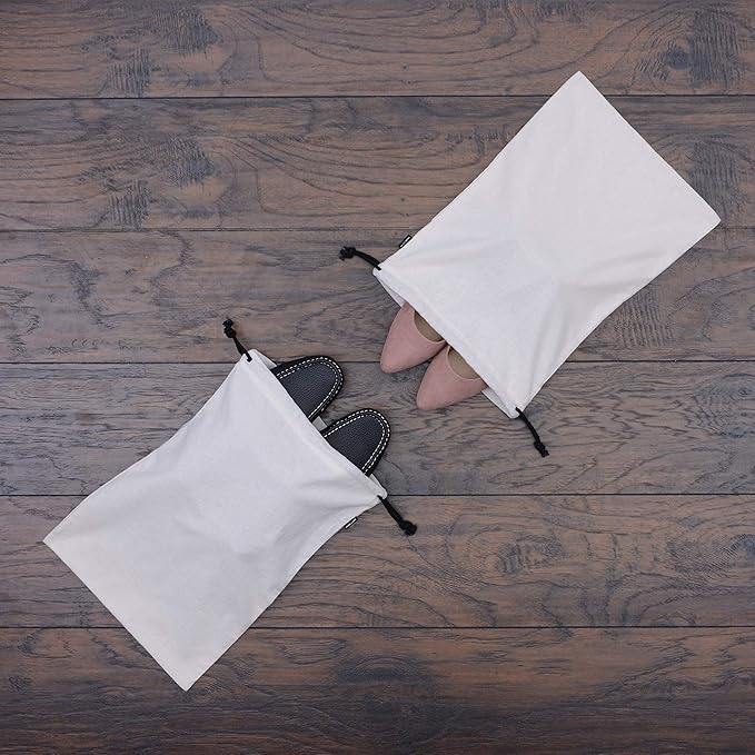 - CONVENIENT PACK OF 2 – Includes two reusable beige cotton shoe bags, giving you protection for multiple pairs of shoes or accessories. Great for travel packing, gym use, or everyday closet organization. Foldable, washable, and eco-conscious for long-term use.