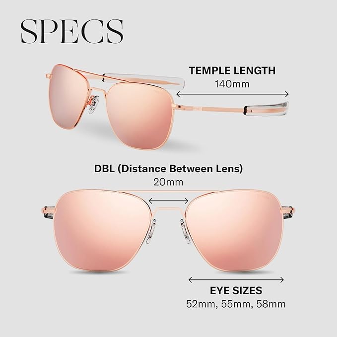 - FRAMES TO LAST A LIFETIME: Our Aviator frames feature a durable 22K Rose Gold finish, reinforced solder joints, and stay-snug screws—crafted with relentless attention to detail for lasting performance and a lifetime of reliability.