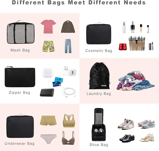 - Versatile and Multi Functional: Fit into different sizes of suitcase; Small size bag in the set can also fit airline carry-on bags, tote, weekender, backpack, duffel bag; Suitable for family breaks, business travel, vacation, hiking, camping, trip, etc