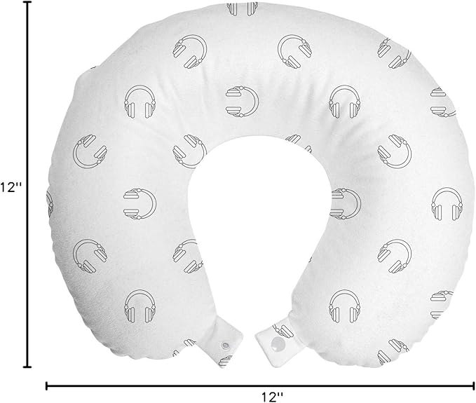 Ambesonne Music Travel Pillow Neck Rest, Headphones Illustration Modern Audio Melody Earphones Sound Stereo Theme Drawing, Memory Foam Traveling Accessory for Airplane and Car, 12", Grey White
