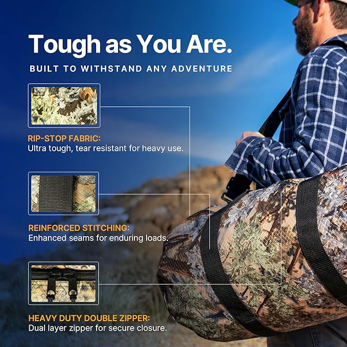 - COMPACT YET SPACIOUS:: Measuring 16" x 40", 131 Liter, this big travel bag is compact yet spacious enough for your essentials. Whether you need a gym bag, outdoor Weatherproof duffel bag for men or a camping bag, its large capacity ensures easy transport without compromising storage.