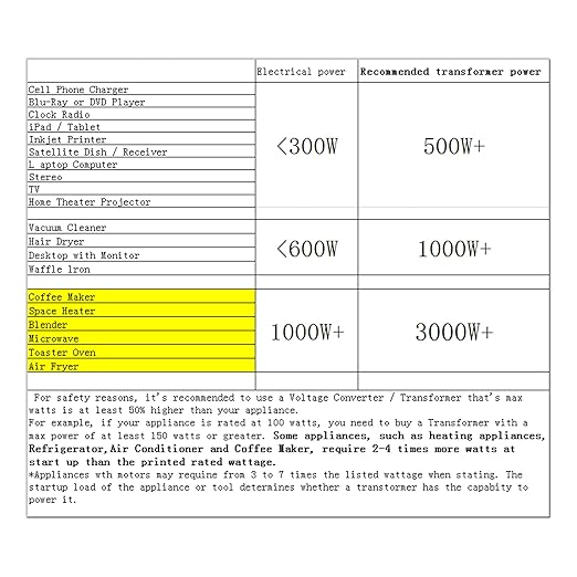 - 【Versatile】The Voltage Converter Transformer can use for both home use and commercial applications.Such as coffee machine, saw, TVs, rice cookers, and more.For safety, it's recommended to use a Voltage Converter/Transformer that's max watts is at least 50% higher than your appliance.We recommend 3X efficiency factor for high wattage heat producing items such as Air Condition, coffee maker,Welding Equipment etc.