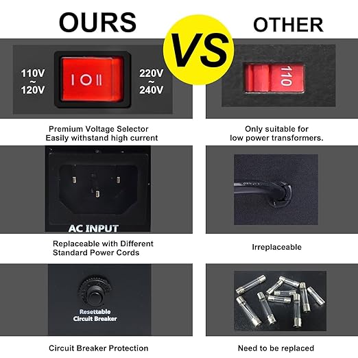 - 【Enhanced Safety】 Our step up step down transformer has CE Certification and is equipped with circuit breaker protection, overload protection, and overheat protection to ensure your safety and prevent accidents.