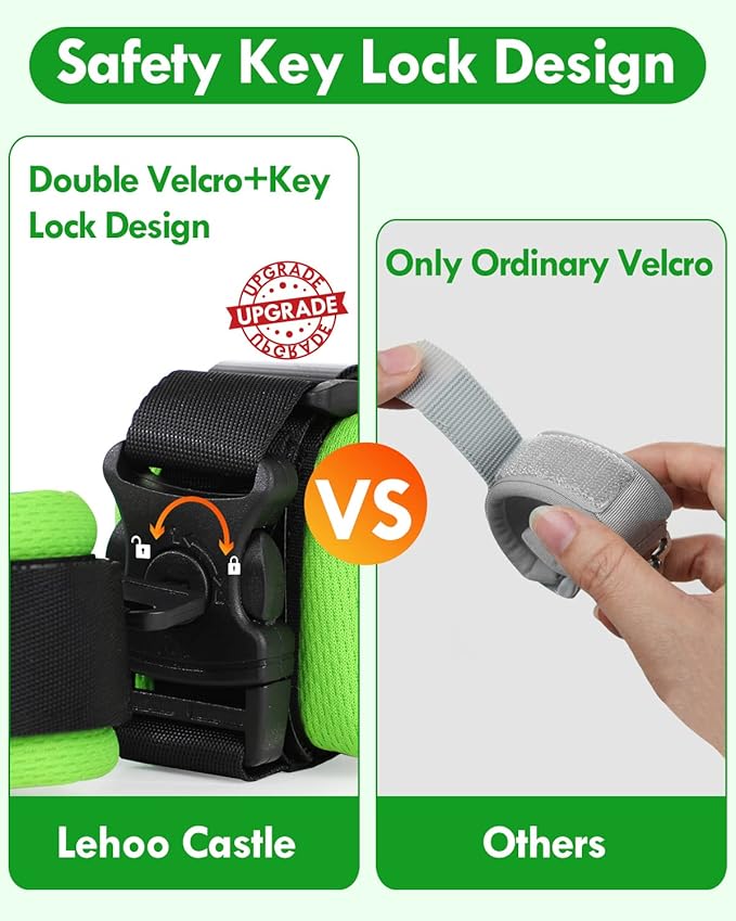 - Maximum Safety for Your Little Ones: Our anti lost wrist link upgrades with a safer key lock - only be opened by the key at one end of the parents' wrist, and the widened metal head makes it difficult to be cut off