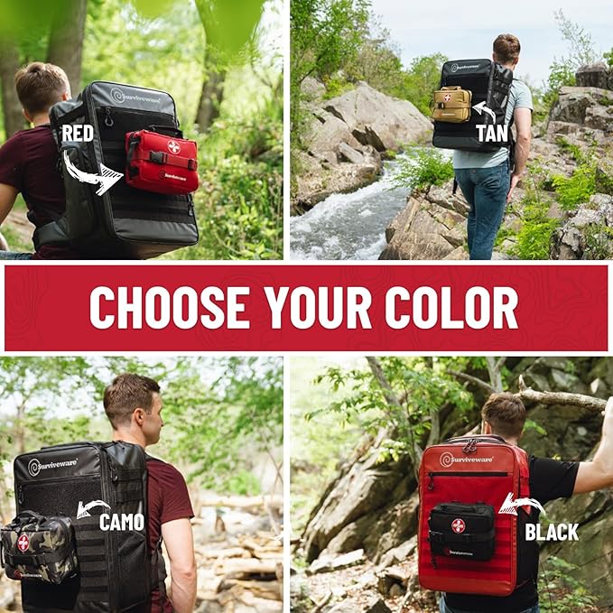 Surviveware 119 Pcs Comprehensive Premium Survival First Aid Kit - Medical Emergency Kit for Travel Camping Gear, Home Essentials & Outdoor Emergencies - HSA & FSA Eligible Survival Kit